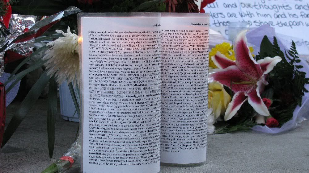 We will never know what a great director Heath would have been. We will never know what a noble Hamlet he would have made. Thank you, who ever posted the link to Terese's blog. I think that also made me realize how much we lost. The anecdote from Neil about the making of Candy...What Ang Lee said about the joy of working with Heath...
