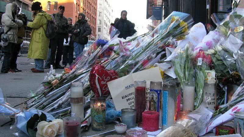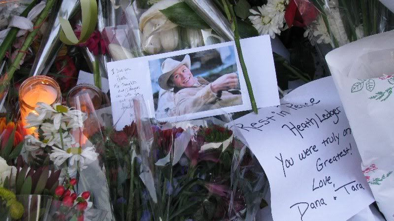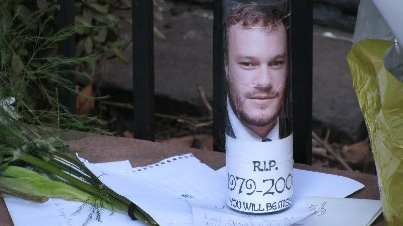 The extensive makeshift memorial in front of Heath's apartment is emblematic of the love that the so many in the world had for him. I wonder if he fully realized it, and if he did not, I wonder if it could have somehow altered the chain of events which led to his untimely demise...