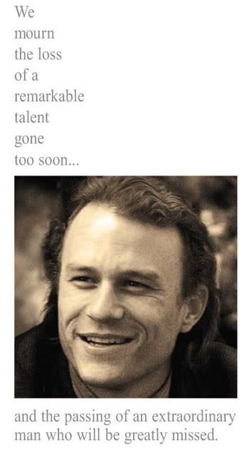 On Monday my work became a hell; I found out that my boss and some co- workers were a liars, very bad people, telling bad things about me when I loved them. So I thought I was going to have to quit my job. On Tuesday my best brokie friend and I had a bitter argument ‘cause of our jealousies and insecurities, so I thought I have lost a friend. On Wednesday my whole world crash down when I heard about Heath’s dead, and I became the ghost I’m now. So my mother was right: Work, friends, illusions, dreams, beautiful things, nothing lasts forever, and you can loose them all in just a second.