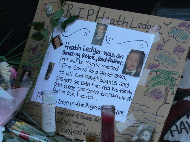 Many thanks to LJN and Ethan to send us all that pics from New-York in memory of Heath...I have lighted a candle yesturday evening : We all share the same sorrow